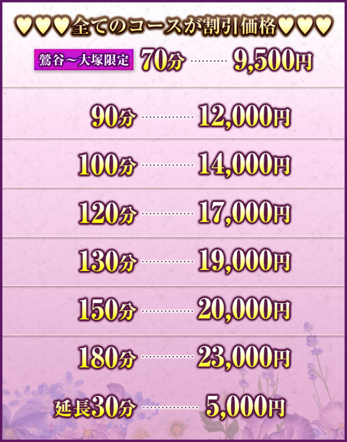 ■ 70分・・・ 9,500円(鶯谷~大塚限定)