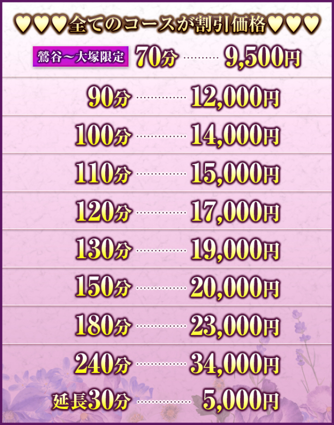 ♥♥♥全てのコースが割引価格♥♥♥